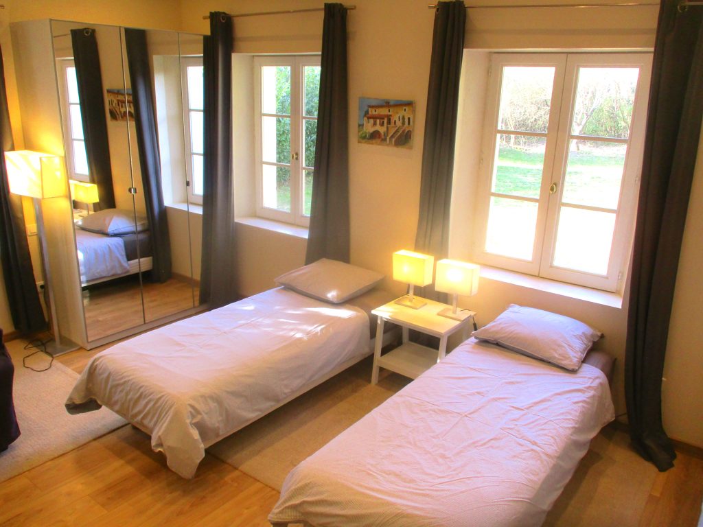 - ein Doppelbett (160X200) und zwei Einzelbetten (90X200) mit Aussicht zum Pool